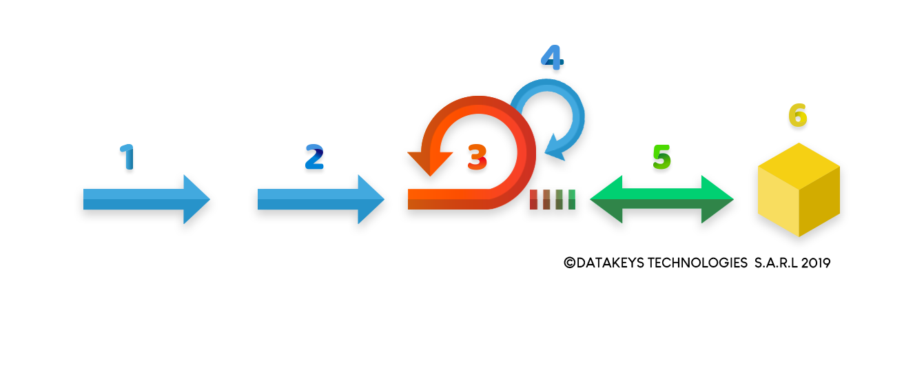 DATAKEYS Technologies a mis au point une approche structurée, inspirée de la méthodologie agile, pour mener à bien ses différents projets en mettant en pratique le framework SCRUM. Nos collaborateurs sont établis en majorité à Montréal, et à Ouagadougou, d'où ils travaillent en synergie et avec transparence. Le graphique suivant illustre les étapes d’un projet géré à l’aide d’une approche agile : le projet est organisé en cycles de développement itératifs et incrémentaux, ou sprints, auxquels participent en collaboration notre équipe ainsi que nos clients.